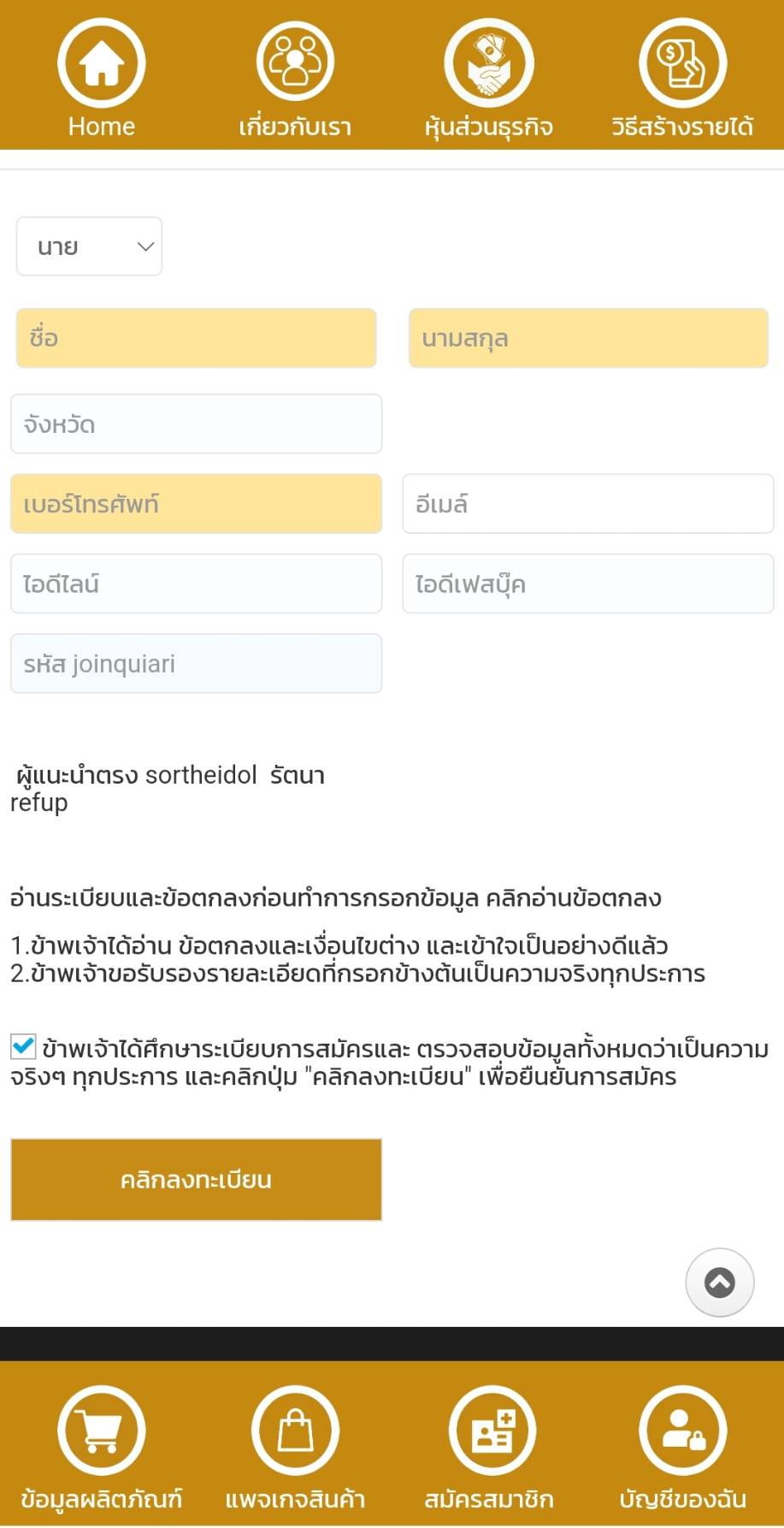 หมายเหตุ เมื่อท่านเข้าสู่ระบบสมาชิก ท่านสามารถนำลิงก์เวปไซต์นี้ไปแชร์ให้กับผู้มุ่งหวังของท่านได้ทันที (ข้อแนะนำวิธีการแชร์ลิงก์อยู่ในระบบเรียบร้อยแล้ว) ข้อมูลที่ท่านได้ลงทะเบีบนไว้จะถูกเชื่อมต่อเข้ากับระบบโดยอัตโนมัติ)